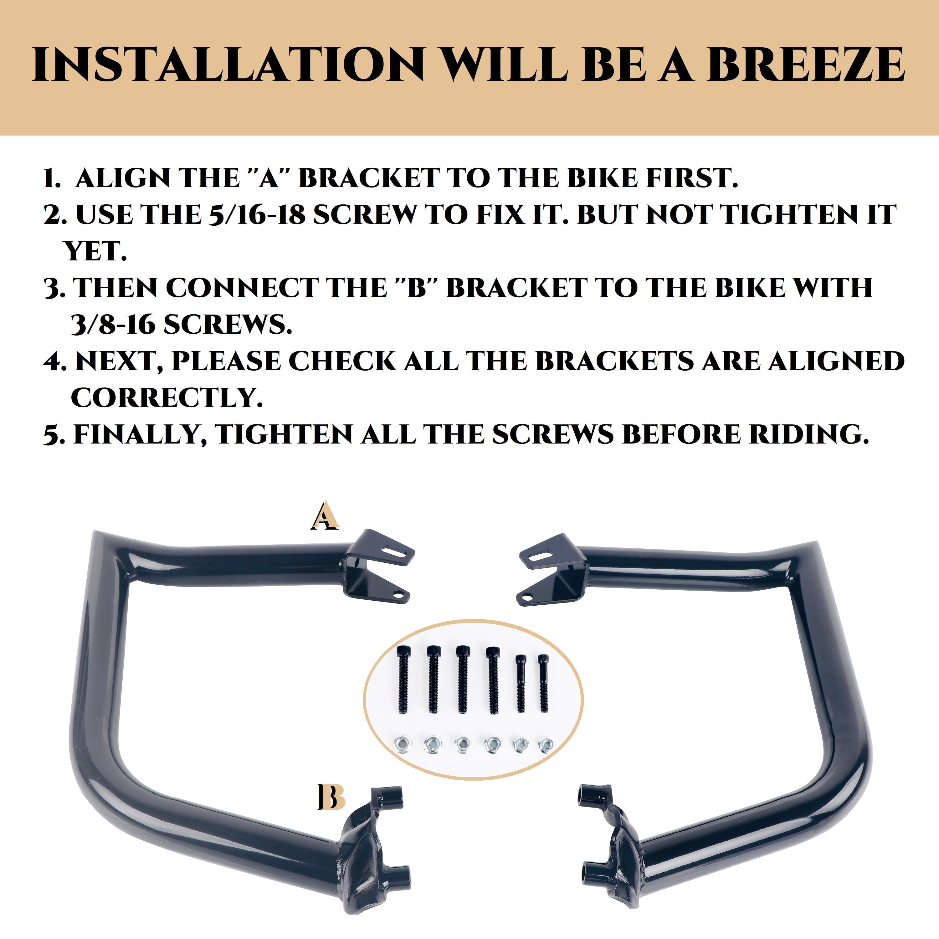 【SAVE THE BIKE TANK, ENGINE, EXHAUST AND PAINT FROM A DROP.】The bar is designed to help protect the bike, reducing damage to the bike while providing an important safety feature for the rider.