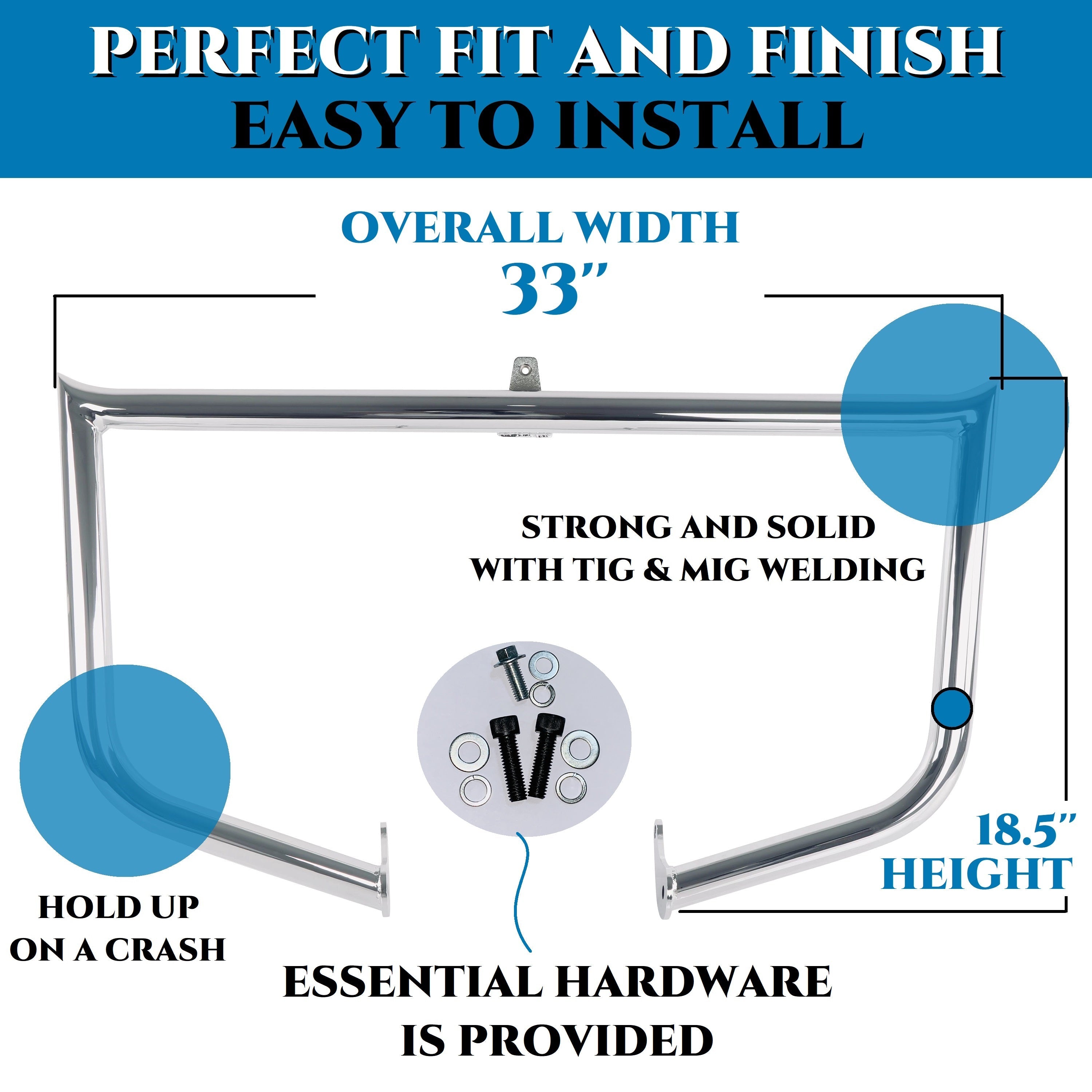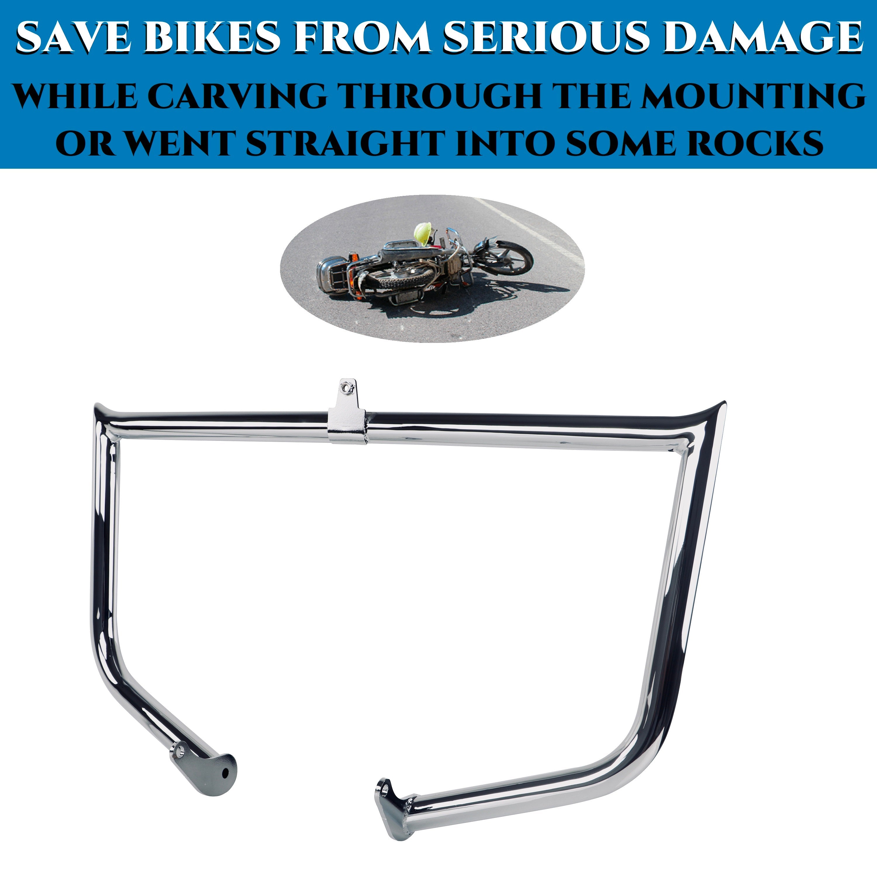 【DESIGNED FOR PROTECTING YOUR FUEL TANK, ENGINE, AND SHINE PAINT.】Prevent extensive damage if bike falls over. Improved safety for the riders is a by-product of crashbar for harley davidson, not the purpose.